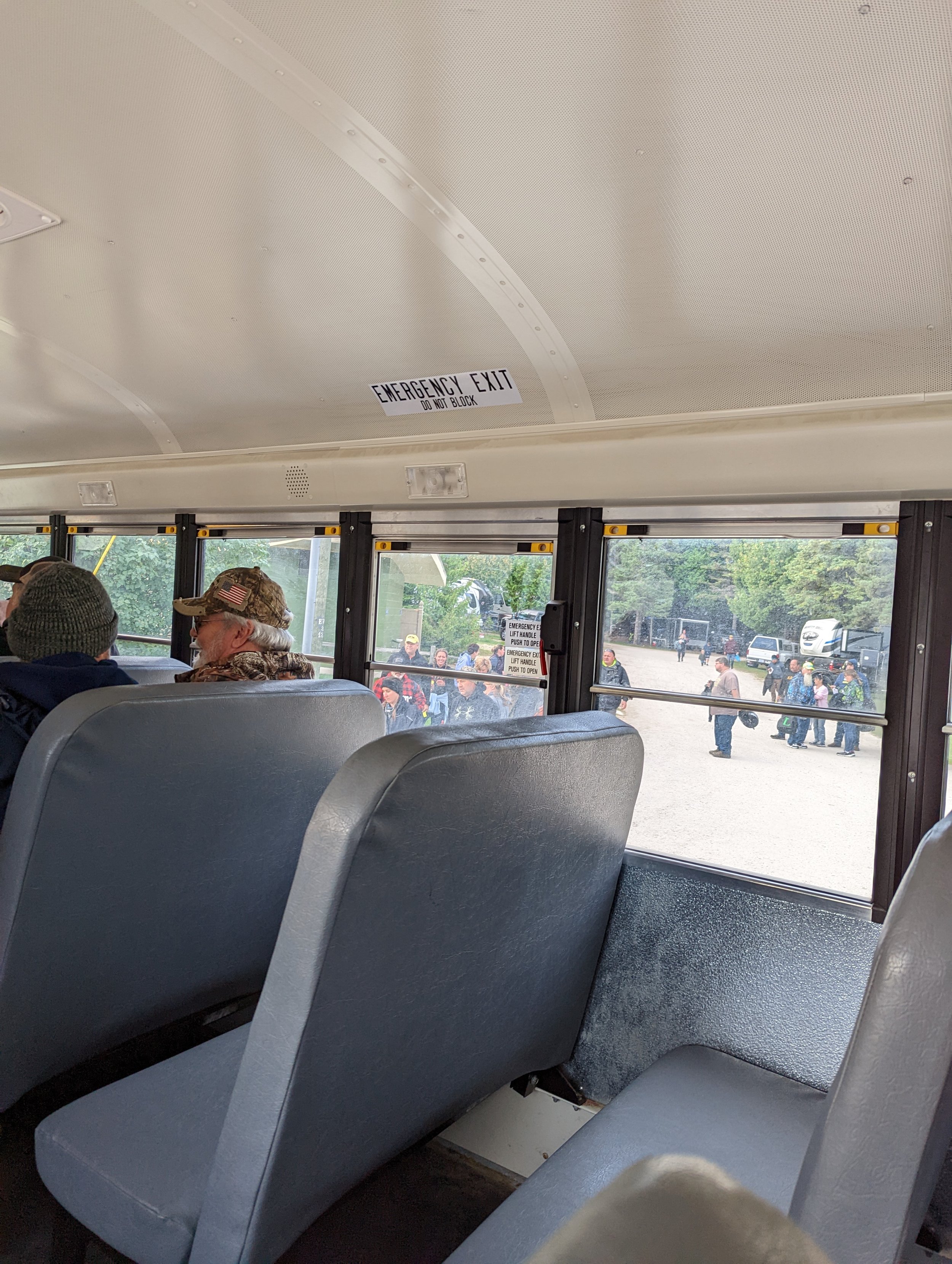 Here we go! Taking the bus ride over to Mackinaw City to our machines.