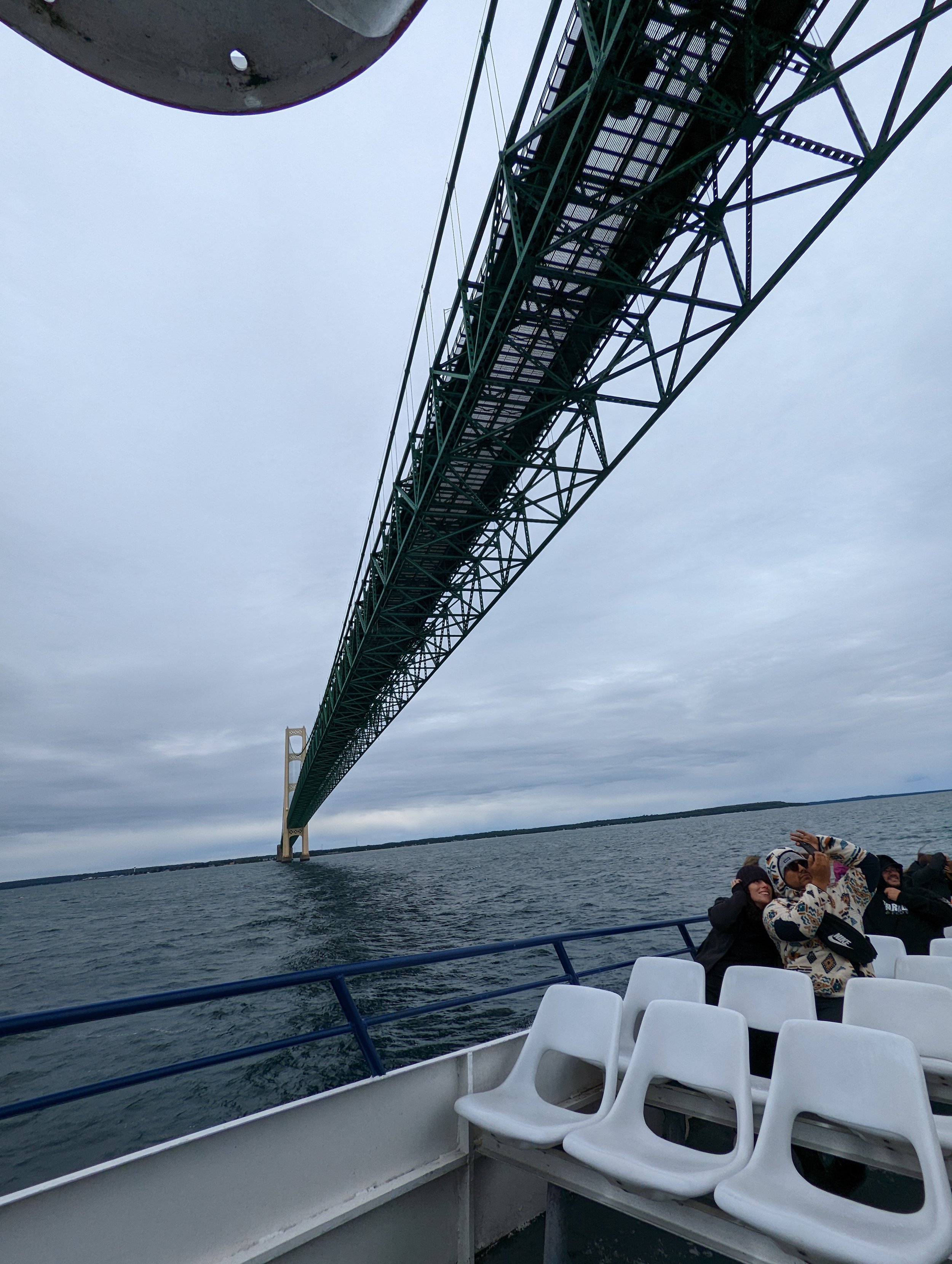 Back to Mackinac Island, first a tour under the bridge!