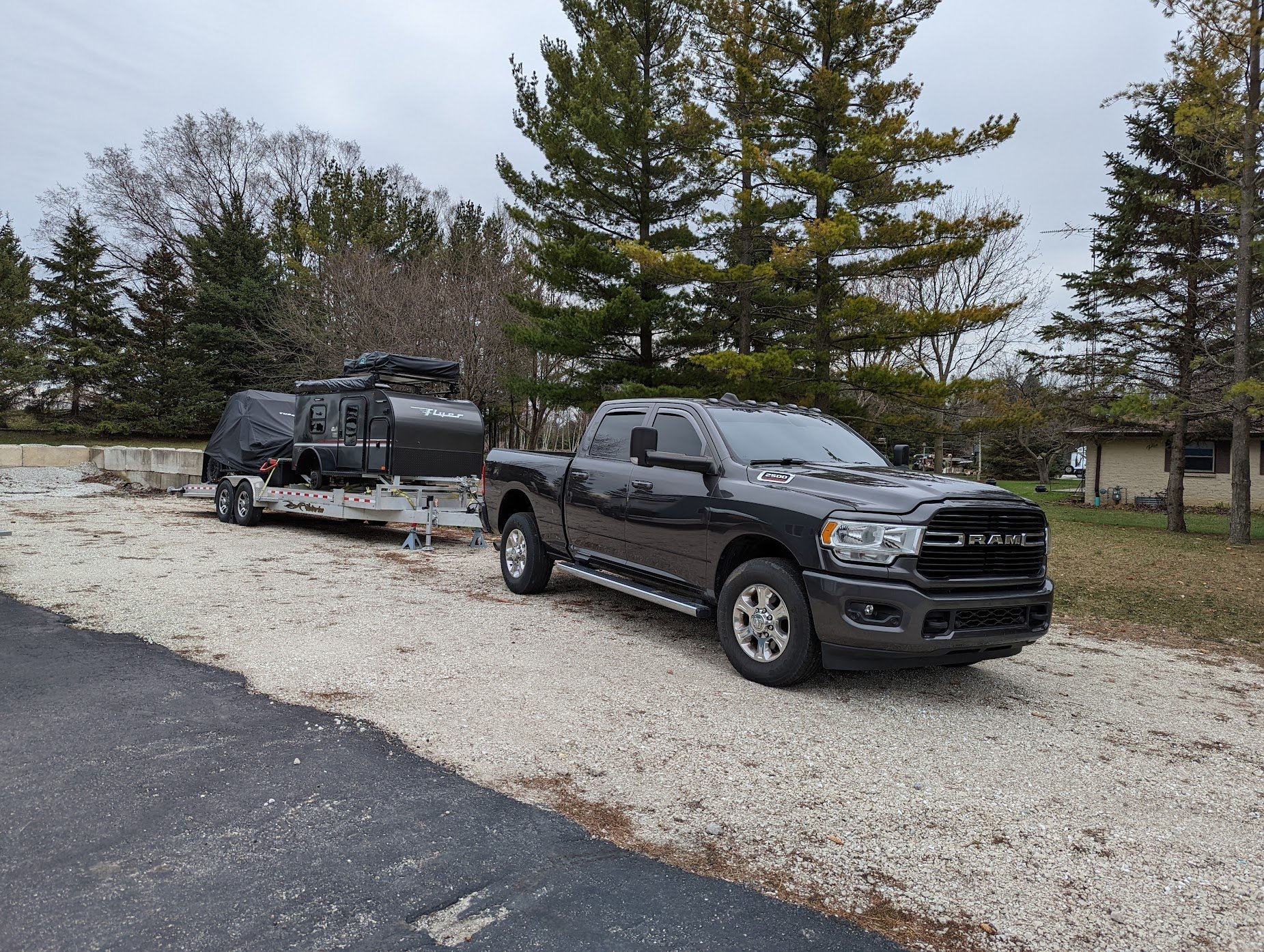I took the set up for a test drive last week and all I have to say is: Wow! What a difference. Plenty of power to pull up hills here in Wisconsin at freeway speeds, something the half-ton would struggle at. Much more comfortable towing, more stable, wonderful purchase!